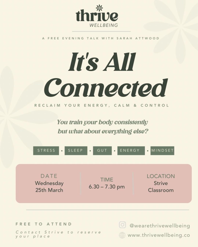 📅 Wednesday 25th March · 6.30 to 7.30pm · Strive Health Club